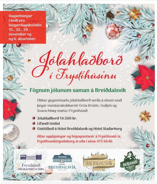 Jólahlaðborðin okkar verða laugardagskvöldin: 15., 22. nóvember og 6. desember.